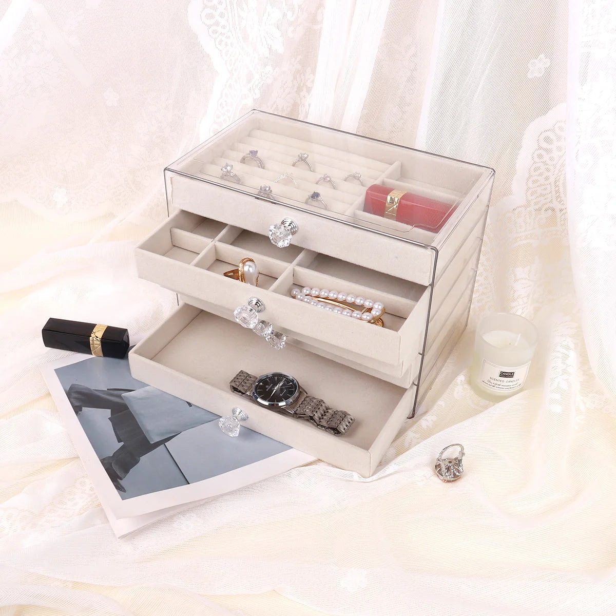 Declutter your vanity and display your treasures beautifully with our Modular Jewelry Tray Organizer. This sleek system features clean, square compartments in a versatile neutral tone, designed to separate and protect everything from delicate rings and studs to bracelets and watches. The modular design allows you to arrange trays individually on your dresser or stack them neatly in a drawer for a custom configuration. Combining minimalist style with practical functionality, this organizer transforms your collection into a curated display, ensuring your favorite pieces are always organized, visible, and tangle-free.