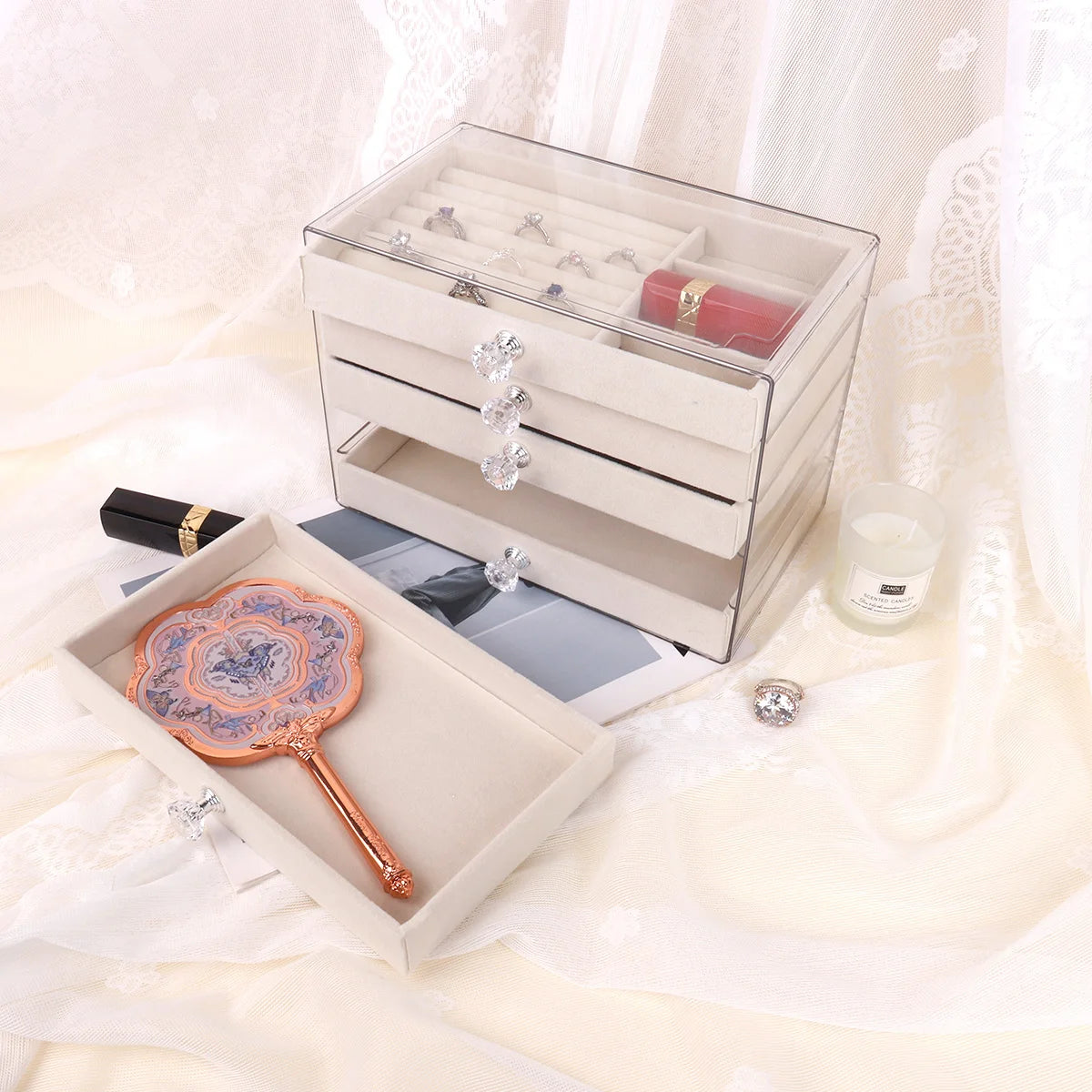 Each section is meticulously sized to separate and protect different types of accessories—from delicate rings and stud earrings in small slots to larger spaces for bracelets, pendants, and watches—preventing tangles, scratches, and loss. The modular square design allows for flexible arrangement; trays can be used individually on a vanity, stacked neatly within a drawer for a custom configuration, or utilized together in a retail setting to present merchandise with a clean, uniform, and professional aesthetic.